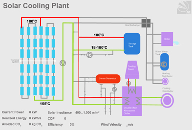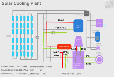 • optimized use of solar thermal systems through use of solar heat for combined assistance of space heating, cooling and domestic hot water preparation.